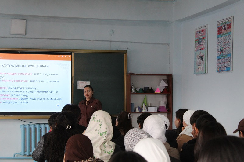 Лекциянын жүрүшүндө Улуттук банктын аткарган ролу жана функциялары, улуттук валютанын тарыхы, өнүгүү этаптары жана коргоо белгилери, кредиттердин жана депозиттердин түрлөрү, каражат топтоо жана эсептешүүлөрдү жүргүзүүдө QR-кодду колдонууну жайылтуу тууралуу маалымат берилди, ошондой эле «Түндүк» тиркемеси аркылуу кредит алууга өзүнө-өзү тыюу салууну активдештирүү жана чектөөнү алып салуу тартиби көрсөтүлдү.